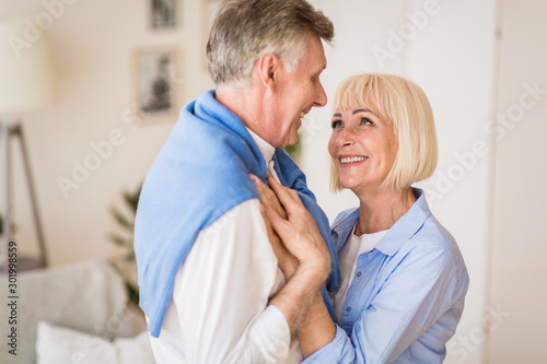 Obraz premium Happy senior couple dancing and smiling to each other