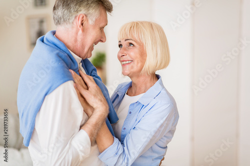 Obraz premium Happy senior couple embracing, enjoying time at home