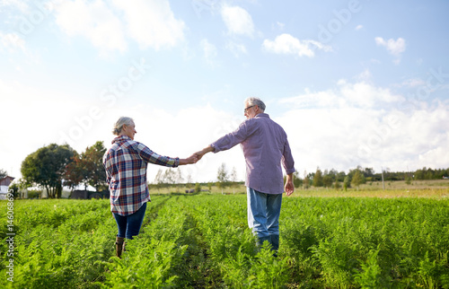 © Syda Productions, Fototapeta premium happy senior couple holding hands at summer farm