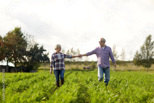 © Syda Productions, Fototapeta premium happy senior couple holding hands at summer farm