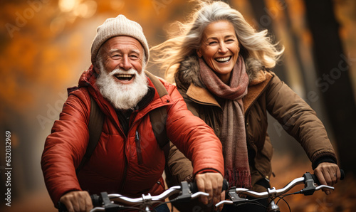 Obraz premium Happy Senior Couple Riding Bicycle in Autumn
