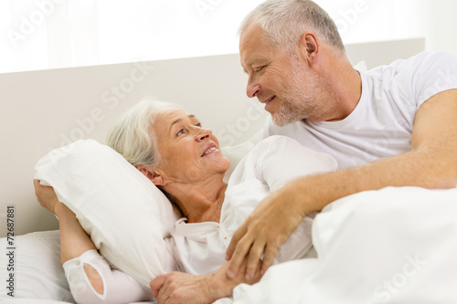 © Syda Productions, Fototapeta premium happy senior coupler lying in bad at home