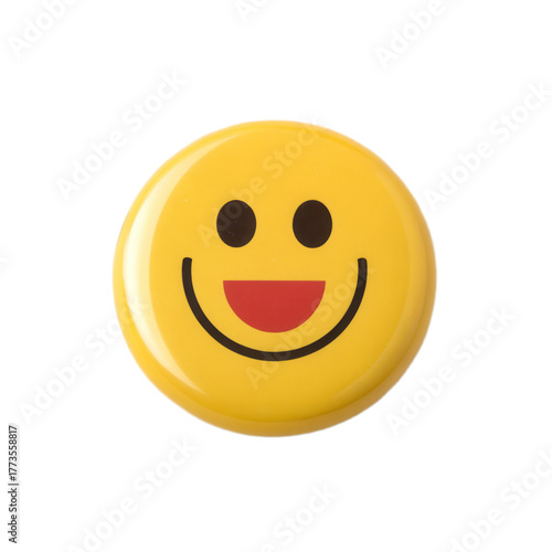 Fototapeta premium Happy smiley face button with transparent background, perfect for adding...