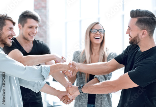 Fototapeta premium Happy smiling business team standing in a row at office.