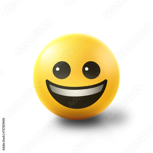Fototapeta premium Happy smiling Emoji stress ball on shiny floor. 3D emoticon isolated.