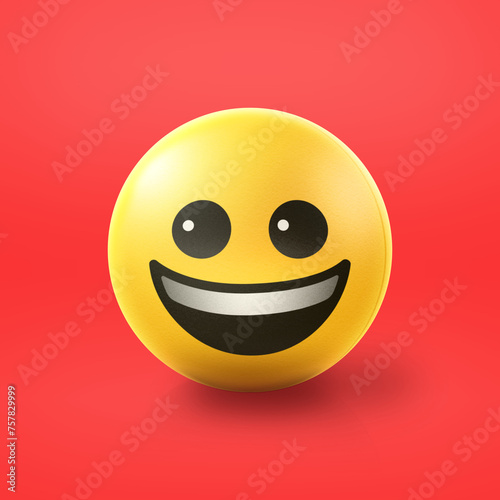 Fototapeta premium Happy smiling Emoji stress ball on shiny floor. 3D emoticon isolated.
