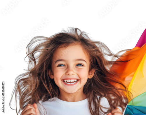 © Maksym, Fototapeta premium Happy Smiling Girl with Colorful Fabric on Transparent Background