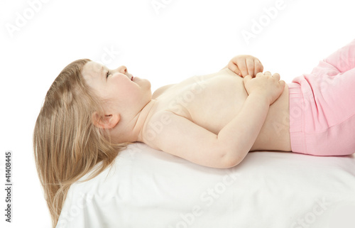 © zest_marina, Fototapeta premium Happy smiling little child lying on a couch