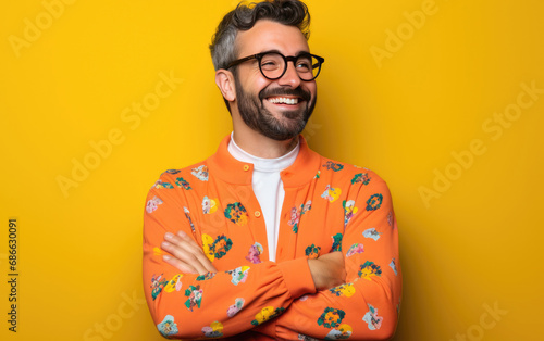 © hakule, Fototapeta premium happy smiling Programmer with color clothing in the color background