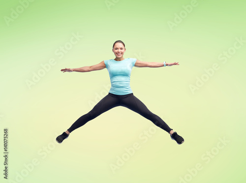 Fototapeta premium happy smiling sporty young woman jumping in air