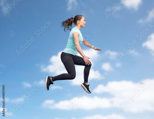 Fototapeta premium happy smiling sporty young woman jumping in air