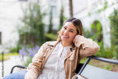 © jorge, Fototapeta premium happy smiling young woman on summer city street