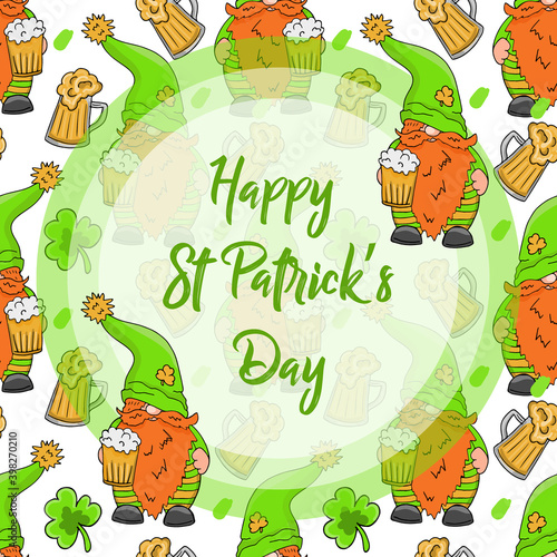 Fototapeta premium Happy St Patrick's Day Invitation Card with leprechaunts