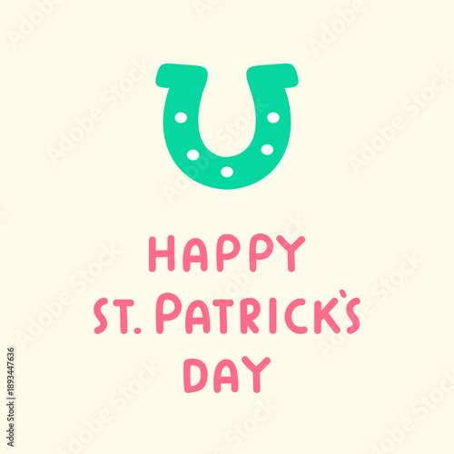 Fototapeta premium Happy St. Patrick's Day with Lucky Horseshoe Flat Vector, Minimalist Colorful...