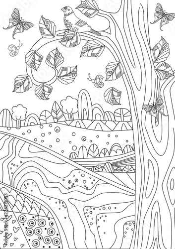 © Aloksa, Fototapeta premium happy summer nature scenery for your coloring book