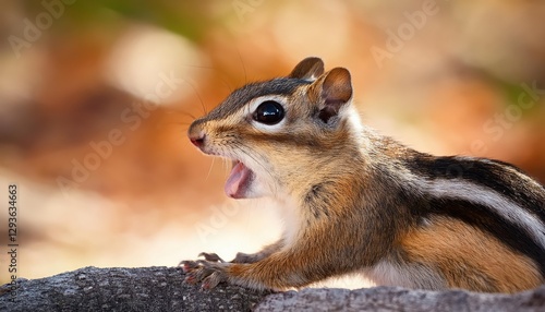 Naklejka premium Happy Surprised Chipmunk Revealing WideEyed Wonder in a Forest Meadow, Capturing Joyful Spirits amidst Autumnal Hues and Rustic Textures.