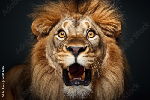 © vlntn, Fototapeta premium Happy surprised lion with open mouth.