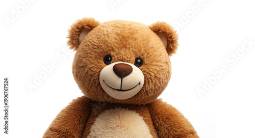 Obraz premium Happy teddy bear character centered on a plain white background