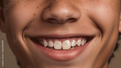 © iuricazac, Obraz premium Happy teen boy smiles with perfect teeth in a studio.