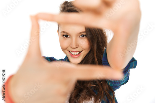 © Syda Productions, Naklejka premium happy teenage girl making frame of fingers