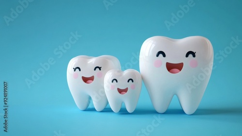 Obraz premium Happy teeth family smiling on a blue background
