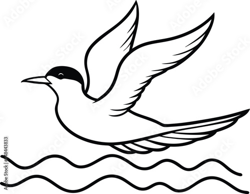 Obraz premium Happy tern gliding gracefully over ocean waves in minimalist line art
