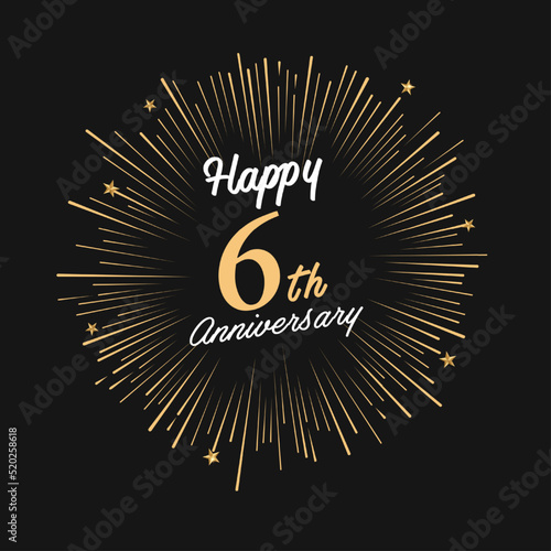 © Endang, Fototapeta premium Happy 6th Anniversary with fireworks and star on dark background.