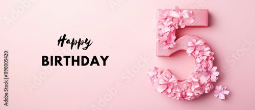 © Fernando, Naklejka premium Happy 5th Birthday Pink Floral Number Five Celebration Image
