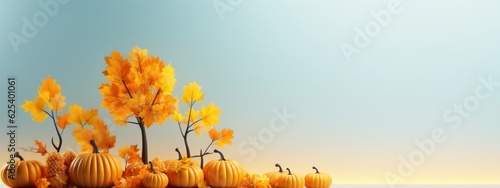 © CYBERUSS, Fototapeta premium Happy Thanksgiving Day Banner. Autumn Elements Composition. Generative Ai