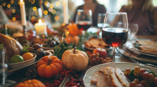 © tanibond, Naklejka premium Happy Thanksgiving day. Family dinner background illustrration generated by ai