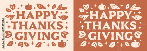 © Pictandra, Fototapeta premium Happy thanksgiving greeting card orange earthy tones natural leaves pumpkins illustration fall season cottagecore farmcore aesthetic banner header shirt design printable sticker print cut file.
