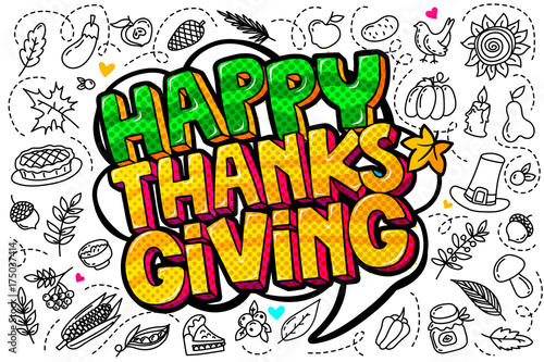 Fototapeta premium Happy Thanksgiving message in pop art style.