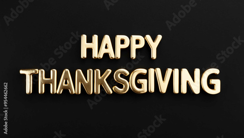 © Erlinda, Obraz premium happy thanksgiving word gold metallic shiny lettering on plain black background