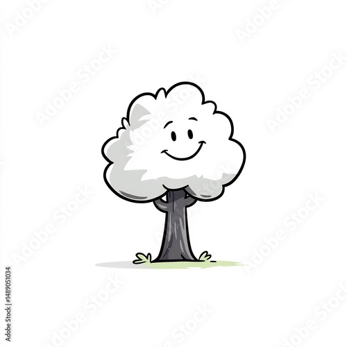 © Kavita, Obraz premium happy tree cartoon with smiling face