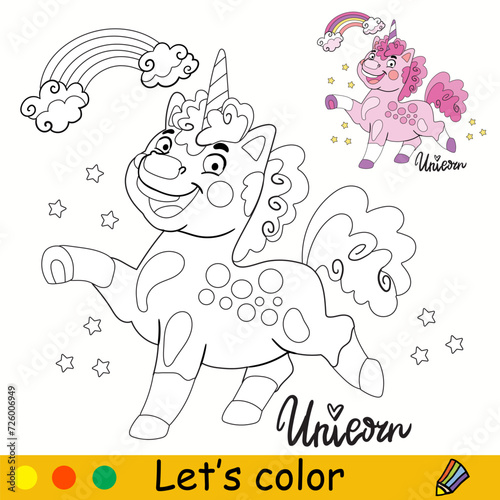 © alinart, Naklejka premium Happy unicorn coloring pages for kids