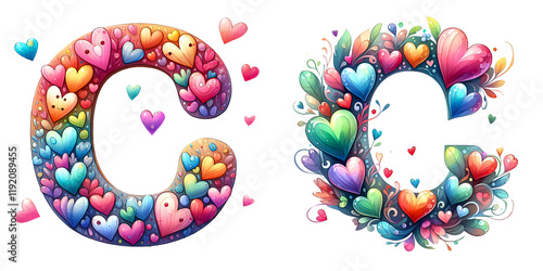 Fototapeta premium Happy Valentine's Day, colorful watercolor cute hearts letter C isolated on a...