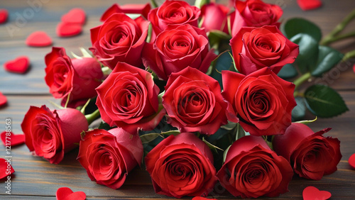 © danny, Fototapeta premium "Happy Valentine's Day" evoking a sense of romance red roses