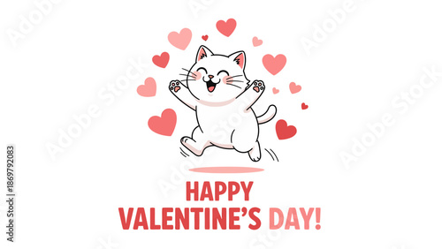 Fototapeta premium Happy Valentine’s Day Greeting with Cute Jumping Cat