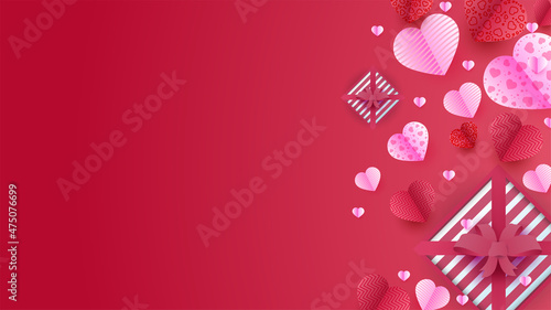 Obraz premium Happy valentine's day Red Pink Papercut style design background