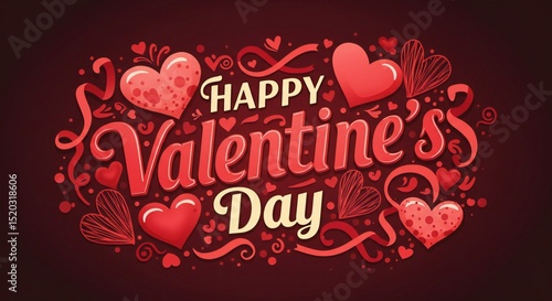 © adstockvision, Naklejka premium Happy valentine's day with hearts and ribbons art