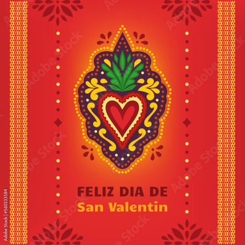 Fototapeta premium Happy Valentines Day, Feliz Dia de San Valentin. Corazon Mexicano. Fiesta...