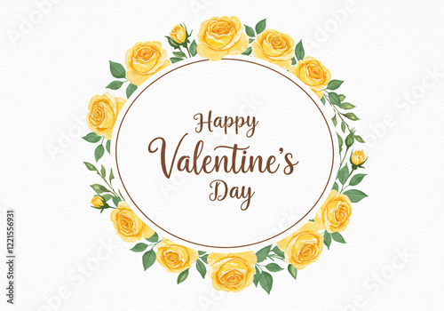 Obraz premium Happy Valentines Day, Floral Yellow Rose border with Typography text design