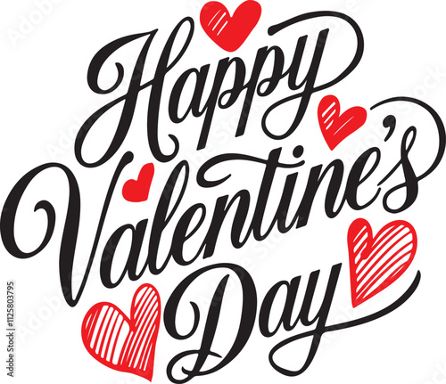 © Nur, Obraz premium Happy Valentines Day lettering typography on white background, greeting card. Vector illustration.