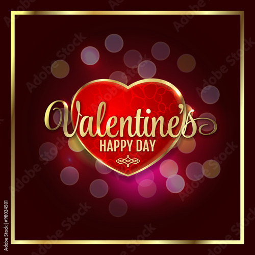 Naklejka premium Happy valentines day luxury heart with bokeh lights Valentine's background