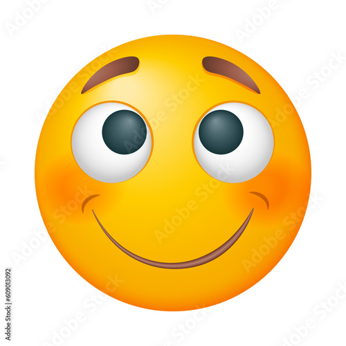 © Inna, Fototapeta premium Happy vector emoji on white background. Vector smiling emoji. Smiling yellow face. Happy. Cute emoticon.