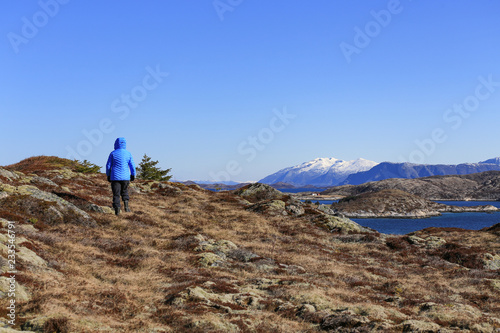 Fototapeta premium Happy walking to Helløya island in Nordland county