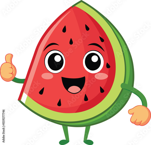 © Jude, Obraz premium Happy Watermelon Character Thumbs Up
