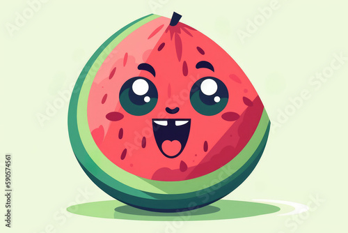 Obraz premium Happy watermelon face emoji, Generative AI