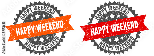 Fototapeta premium happy weekend band sign. happy weekend grunge stamp set