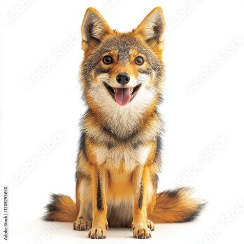 © Kantita, Fototapeta premium Happy Wild Canine with Vibrant Fur Poses Cheerfully Against White